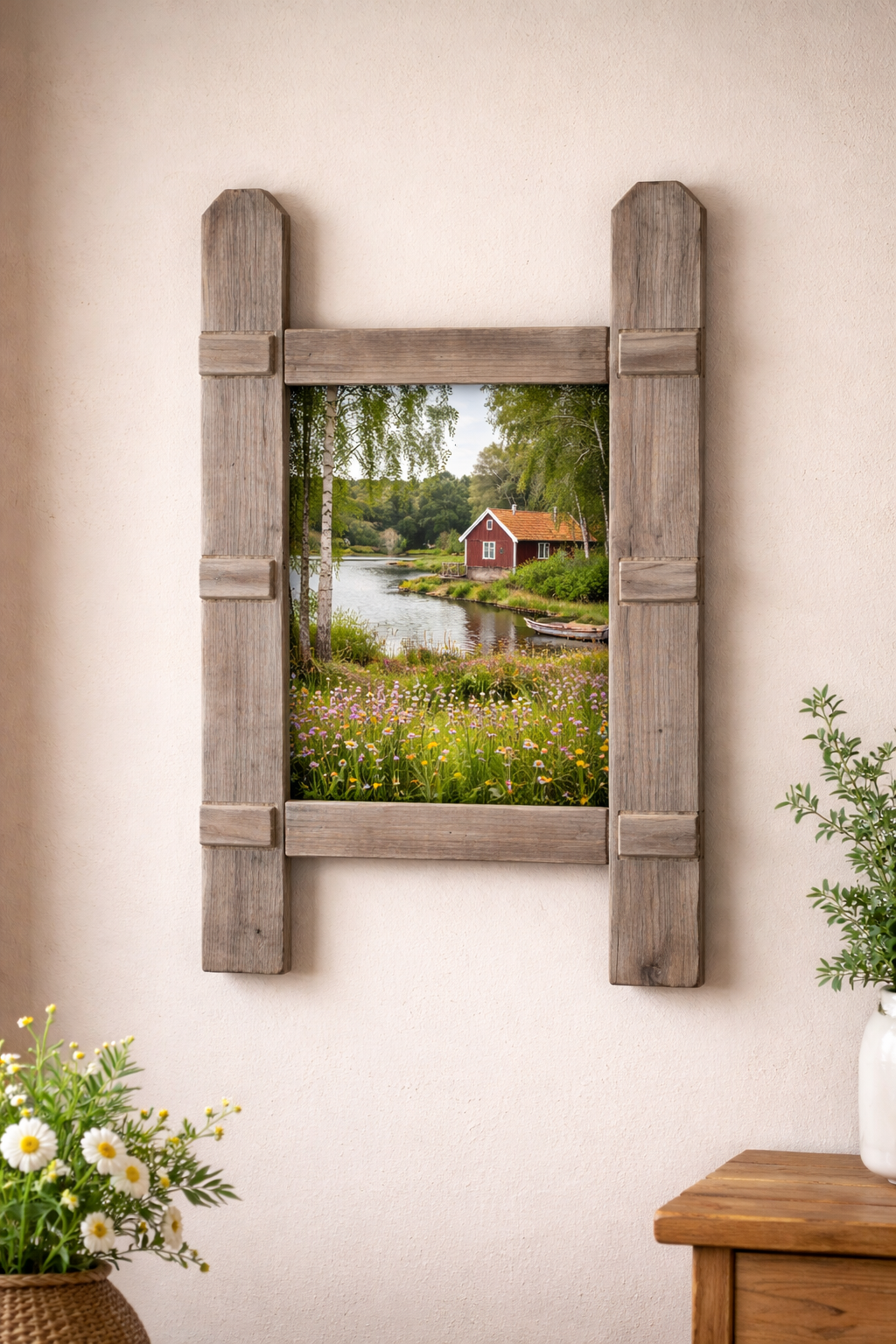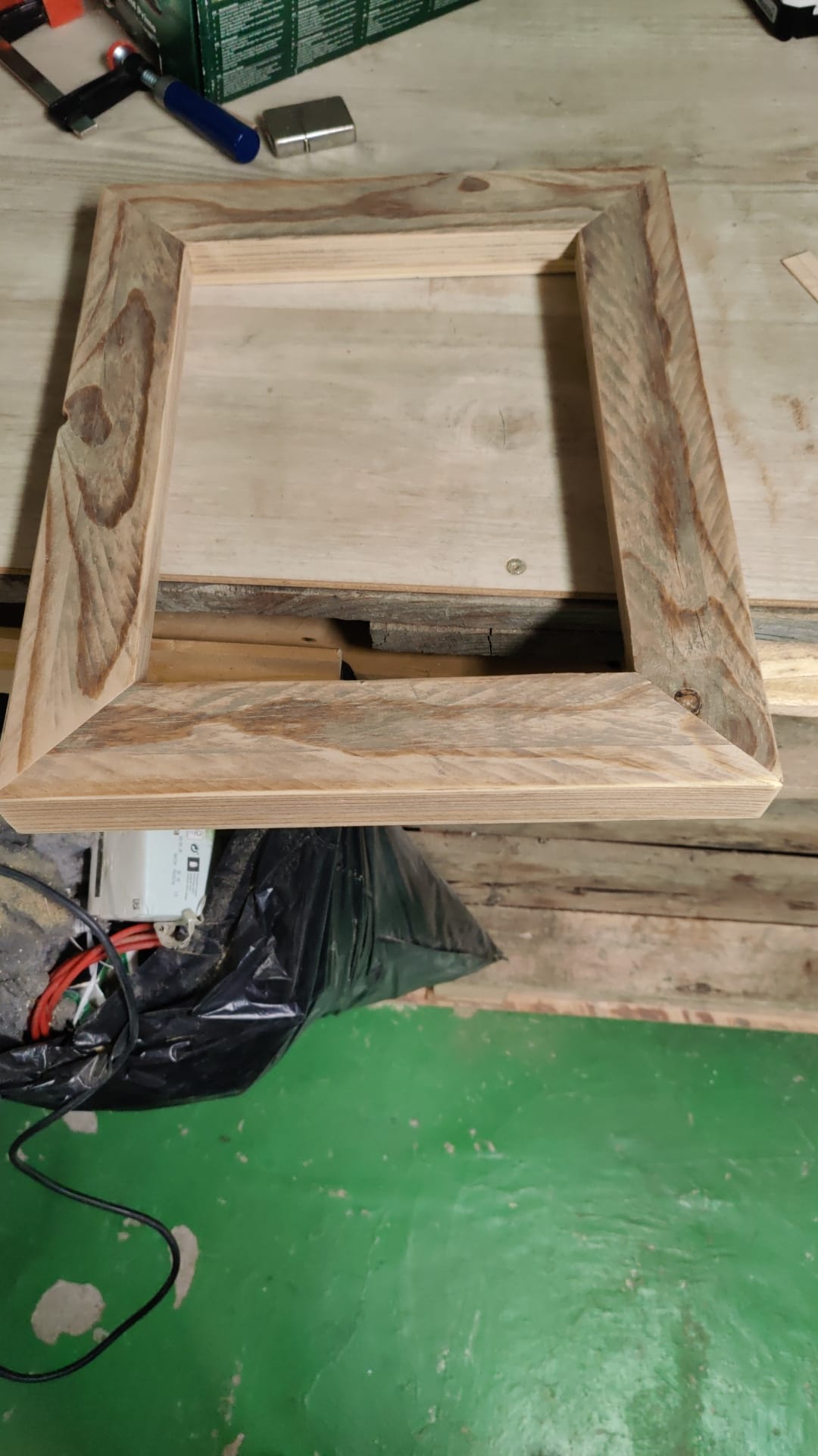 Se här ett fint projekt, tillverkat av trä från ett gammalt trädgårdsstaket. På första bilden ser du byggprocessen, på den andra slutresultatet: en vacker rustik fotoram, helt handgjord. Det ligger helt i linje med vår vision om hållbart återbruk: att ge befintliga material ett andra liv, med respekt för karaktär och hantverk.